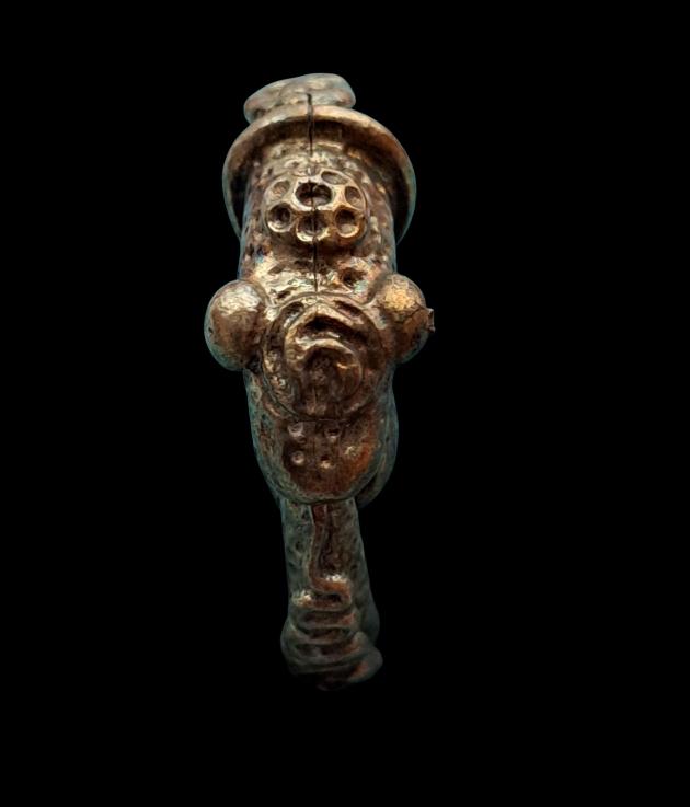 แหวนงูกินหาง บ่วงนาคราช หลวงพ่อรัช วัดกะเปา (วัดโกศาวาส) จ.สุราษฎร์ธานี ปี 2537 เนื้อสัมฤทธิ์แก่เงิน(เคาะเดียว) |