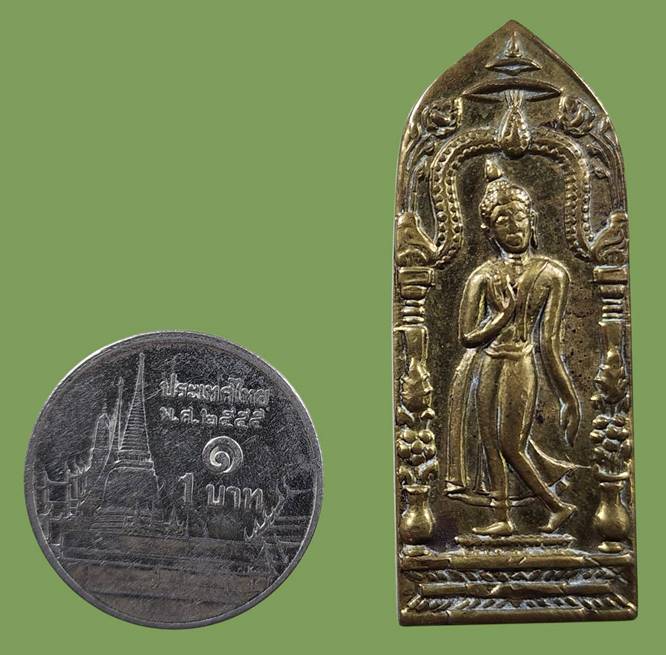 เหรียญพระลีลากำแพงนิ้ว ปี 2507 เนื้อทองเหลือง สุดยอดพิธี หายากครับ |
