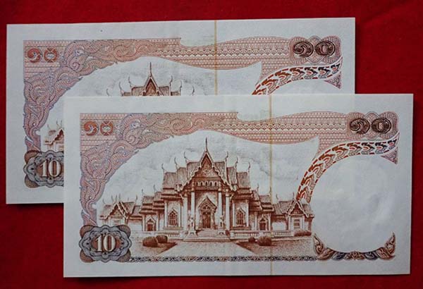 ธนบัตรในหลวง ร.๙ (โทมัส แบบ11) ราคา 10 บาท (หลังวัดเบญจฯ)