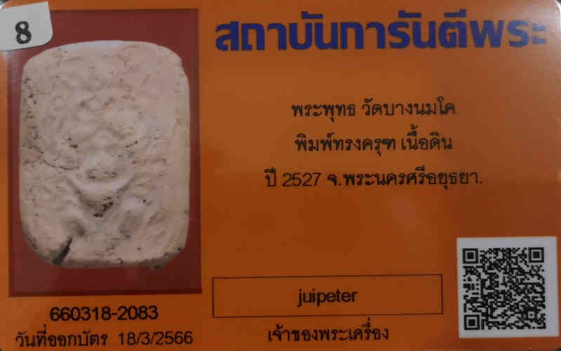 พระเนื้อดินหลวงพ่อปานพิมพ์ทรงครุฑวัดบางนมโค ปี 2527 พร้อมบัตรรับรอง