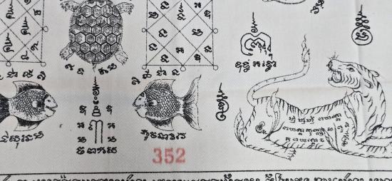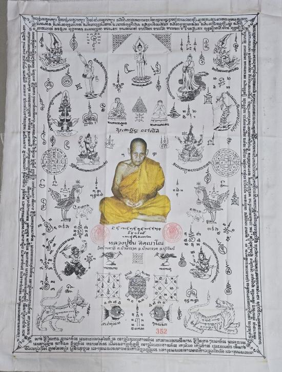 ผ้ายันต์หลวงปู่ชื่น วัดตาอี จ.บุรีรัมย์ ปี2545 ผืนใหญ่ 55 x 75 ซ.ม. หายาก หมายเลข 352 ครับ