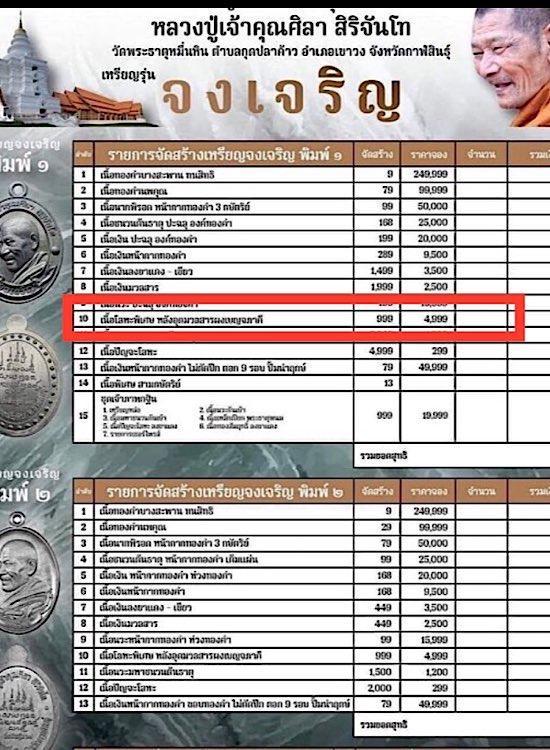 หลวงปู่มหาศิลา จงเจริญพิมพ์1เนื้อโลหะพิเศษหลังอุดมวลสาร จมูกโด่ง เลข 614กล่องเดิมราคาจอง4,999 บาท