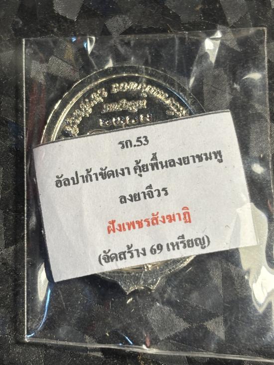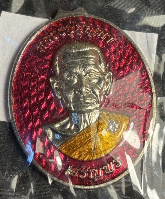 เหรียญเจริญพรล่างหลวงปู่บุญมาจังหวัดปราจีนบุรีเนื้ออัลปาก้าขัดเงาพื้นลงยาสีชมพูฝังเพชรสังฆาฏิจัดสร้าง 69 เหรียญ |
