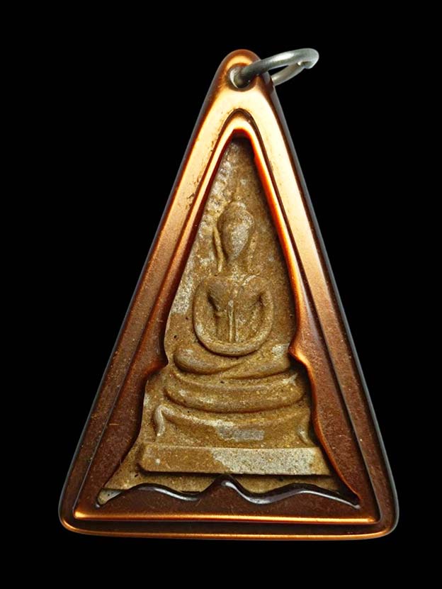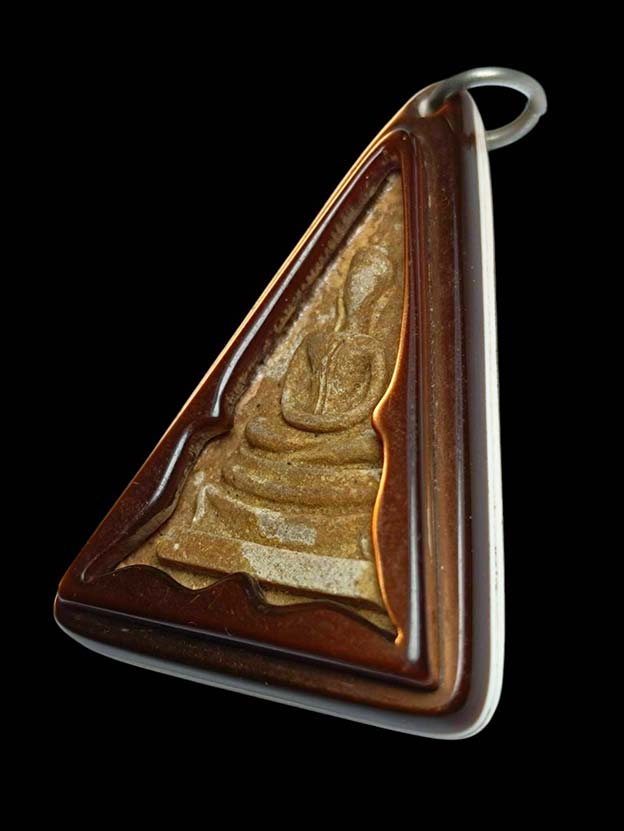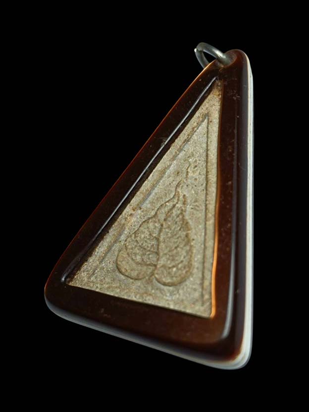 พระสมเด็จวัดพระเชตุพล (วัดโพธิ์ ท่าเตียน) พิมพ์สามเหลี่ยม หลังใบโพธิ์ พ.ศ.2515 จ.กรุงเทพฯ เลี่ยมกรอบพลาสติกคลาสสิค |