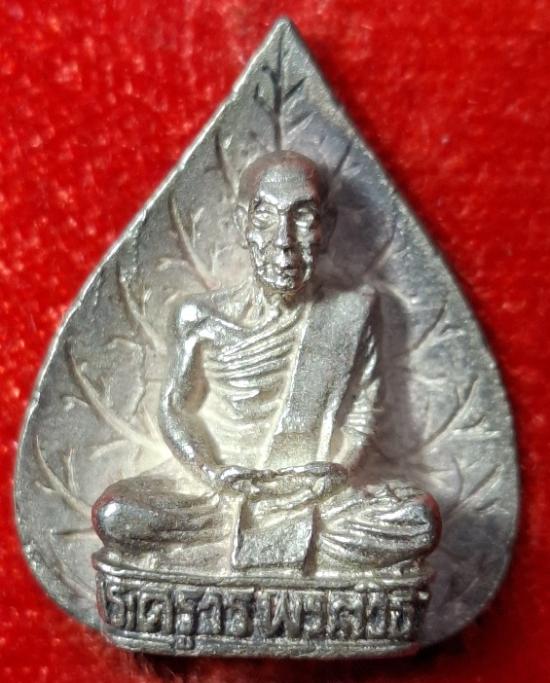 รูปหล่อใบโพธิ์ (เนื้อเงิน) หลวงปู่วรพรต วัดจุมพล จ.ขอนแก่น ปี2536 (รุ่นเสาร์๕ เนื้อเงิน จัดสร้างน้อย หายาก สภาพสวย กล่องเดิม นิยม)