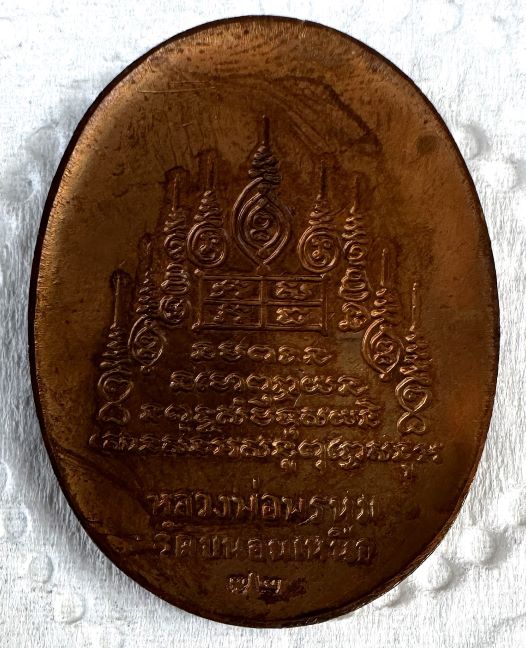 เหรียญแอ่งกะทะที่ระลึกครบ 6รอบ หลวงพ่อพรหม วัดขนอนเหนือ พ.ศ.2528 เนื้อทองแดง