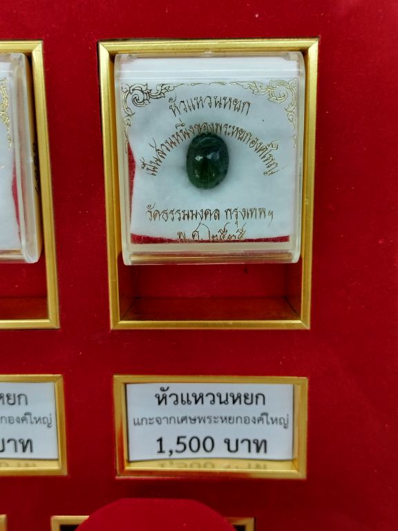 หัวละ 1500 มาถึง 5 หัว หลวงพ่อวิริยัง วัดธรรมมงคล แกะจากส่วนหนึ่งขององค์พระใหญ่ รายการนี้ทางเว็บยังไม่ออกบัตรรับรองให้นะคะเนื่องจากยังไม่มีข้อมูลอ้างอิงสำหรับเครื่องรหัสชนิดนี้ค่ะ " ตัวเรือนโลหะชุบทอง กล่องหัวแหวน ไม่อยู่แล้ว เพราะสั่งทำตัวเรือนมานานมากๆแล้วไม่รู้ว่าเก็บไว้ตรงไหนหรือทิ้งไปแล้วค่ะ |