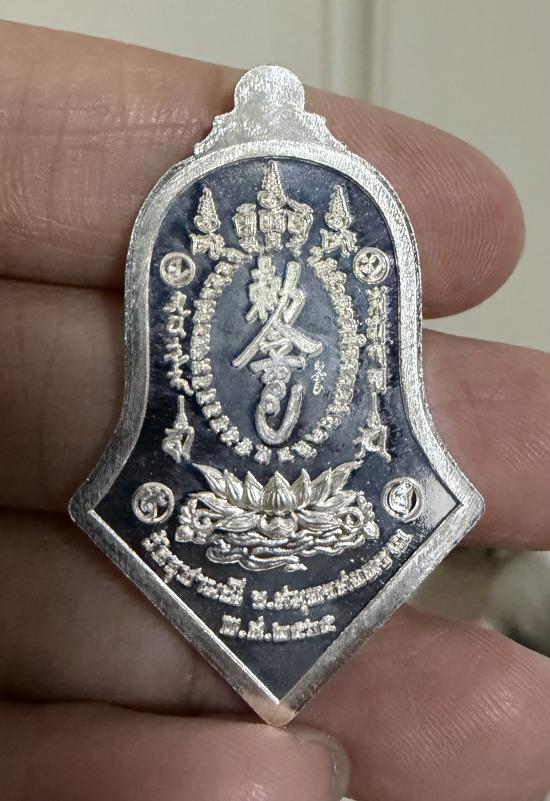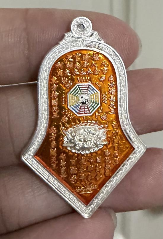เหรียญกันชง พิมพ์ใหญ่ ปี 65 ทรงจำปี หลวงพ่ออิฏฐ์ วัดจุฬามณี จังหวัดสมุทรสงคราม เนื้อเงิน ลงยาส้ม สวยเดิมๆ