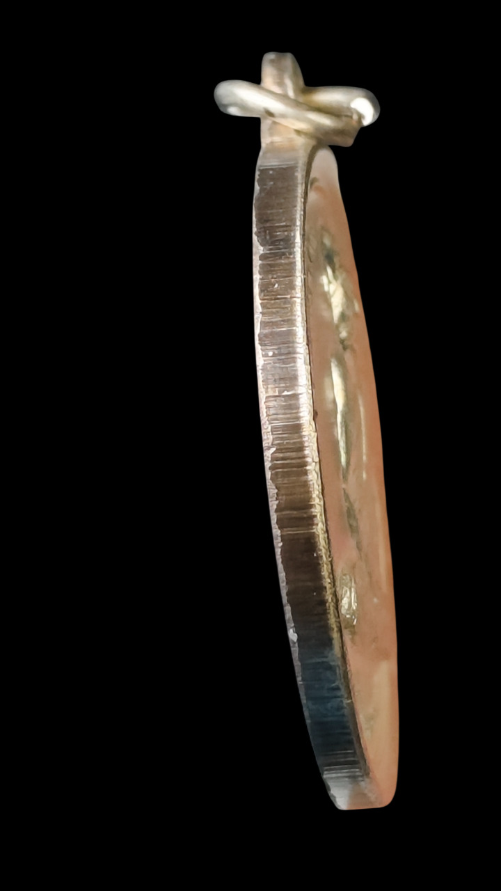 ลักษณะเป็นเหรียญกลมใหญ่ด้านหน้ารูปหลวงปู่นั่งขัดสมาธิเต็มองค์ ด้านหลังยันต์นะครอบจักรวาล.. |