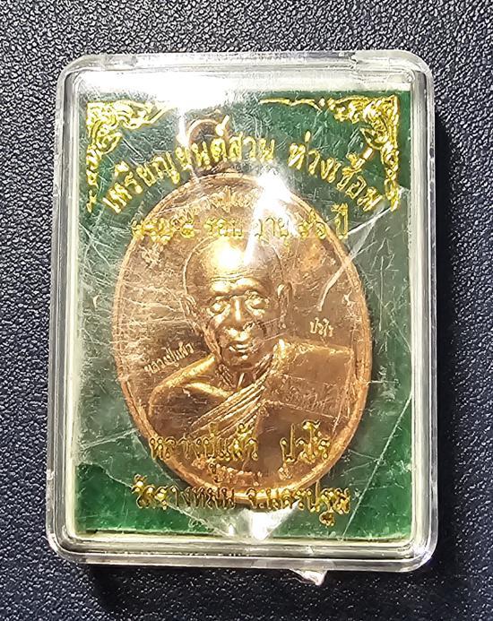 @เหรียญยันต์สวนห่วงเชื่อม ครบ 8 รอบ 96 ปี หลวงปู่แผ้ว ปวโร วัดรางหมัน ปี 2562 เนื้อทองแดง พร้อมกล่องเดิม |