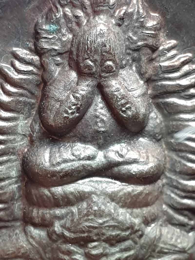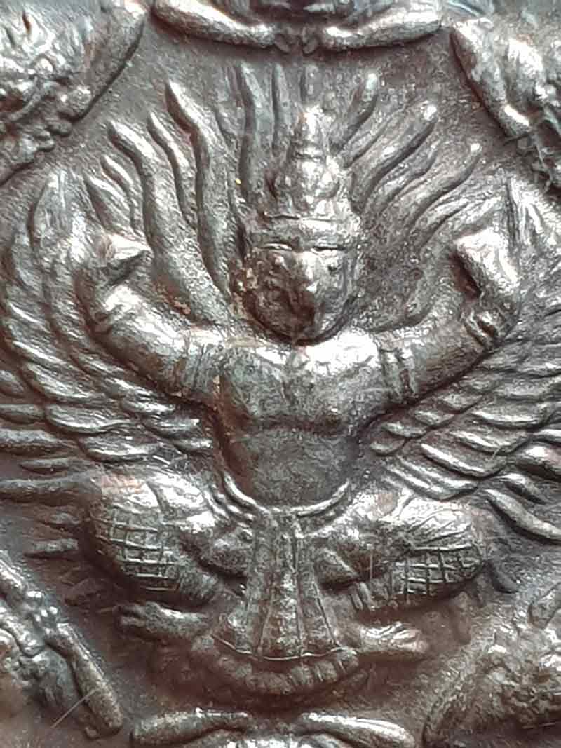 ด้านหลังเป็นพญาครุฑและพระราหู 8 ทิศ พิธีศักดิ์สิทธิ์...พิธียิ่งใหญ่ เนื้อนวะโลหะ ขนาด 3 ซ.ม. เลข 490