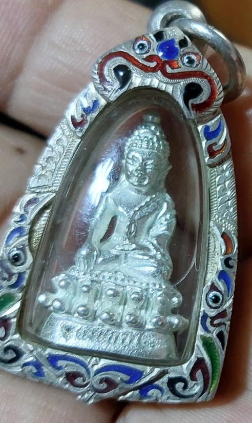 พระชัยวัฒน์ กลวงปู่นิยม กมโล เนื้อเงิน เลี่ยมเงินลงยา สั่งทำมิอ วัดแจ้งนอก ปี2555