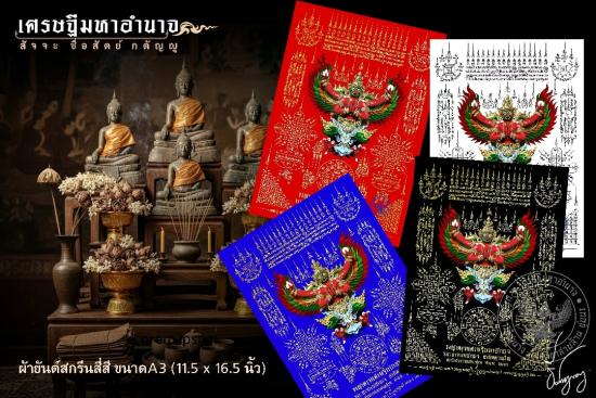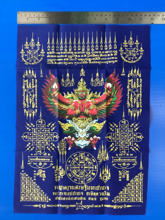 ผ้ายันต์ พญาครุฑทรงฤทธิ์แห่งอาณาจักรทะเลใต้ เศรษฐีมหาอำนาจ หลวงพ่ออำนาจ อาทิตฺตวณฺโณ สำนักสงฆ์เขาสามล้าน จ.ชุมพร สีน้ำเงิน ขนาดA3 ( 11.5 นิ้ว x 16.5 นิ้ว ) |