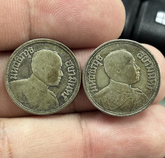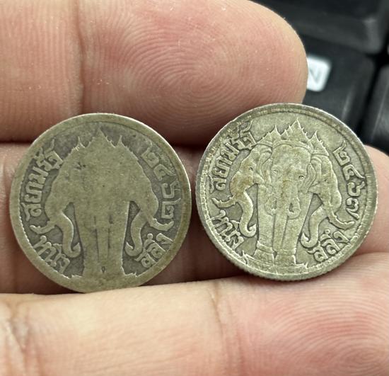 เปิดเคาะเดียวแดง!!! เหรียญหนึ่งสลึง หลังช้างสามเศียร ร.6 ปี2462,ปี2467 จำนวน2เหรียญ