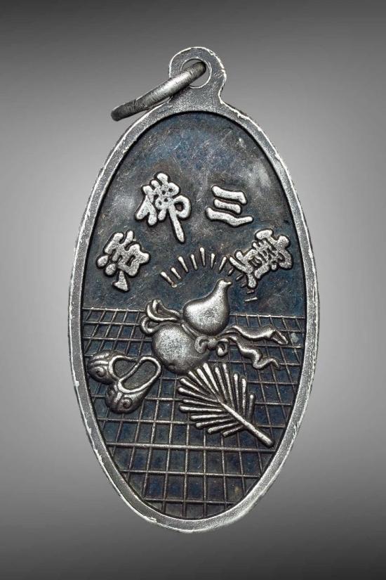 //เคาะแดง//เหรียญพระอรหันต์จี้กง หลัง รองเท้า/น้ำเต้า/พัด ((เนื้อเงิน)) ไม่ทราบที่ครับ |