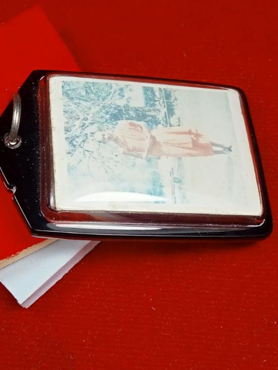 รูปถ่ายยืนหลวงพ่อเกษม เขมโก วัดนางเหลียว สียุคต้นๆ หลังแผ่นตะกรุด