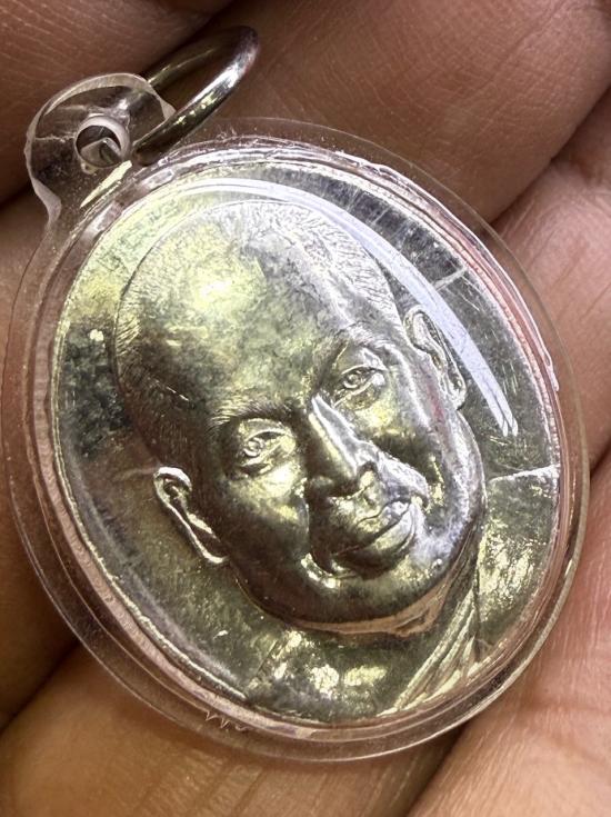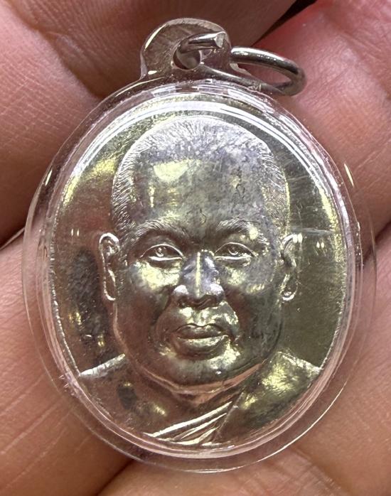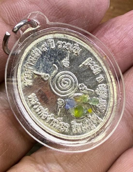 เหรียญเนื้อเงิน หลวงพ่อจำเนียร วัดถ้ำเสือ กระบี่ รุ่น มวลสารเสก 9 ปี รวยเงิน เนื้อเงิน หลังพลอย เกศา เลี่ยมเดิมจากวัด