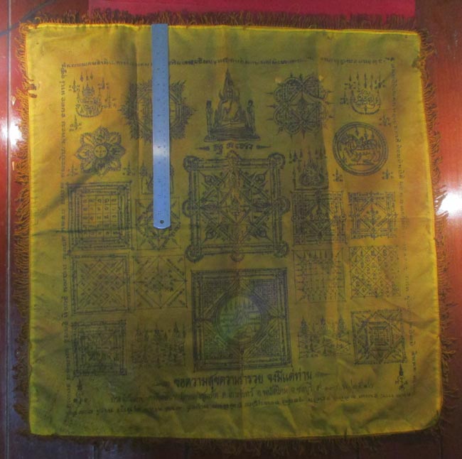 ผ้ายันต์ ที่ระลึกในงานผูกพัทธสีมา วัดหนองชุมเห็ด ต.เกาะจันทร์ อ.พนัสนิคม จ.ชลบุรี ๒๕๔๐ ครับ (พระบ้าน ครับ) |