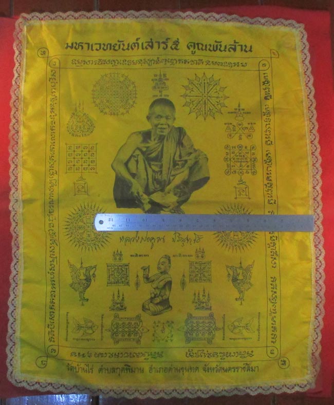 ผ้ายันต์ มหาเวทยันต์เสาร์ ๕ คูณพันล้าน วัดบ้านไร่ ต.กุดพิมาน อ.ด่านขุนทด จ.นครราชสีมา ครับ (พระบ้าน ครับ) |