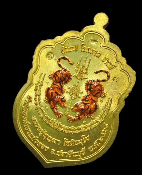 เหรียญรุ่นเสมาเสือคาบดาบ 1 หลวงปู่บุญมา โชติธมโม สำนักสงฆ์เขาแก้วทอง เนื้อทองทิพย์ ลงยา หมายเลข 4