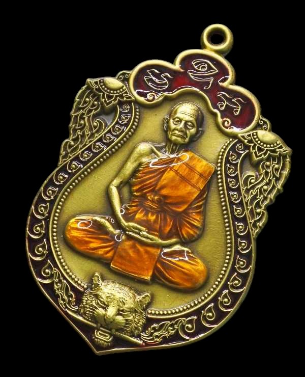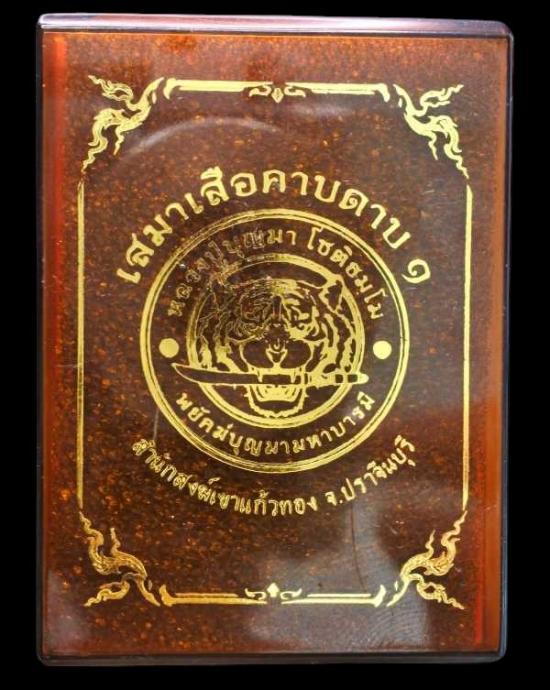 เหรียญรุ่นเสมาเสือคาบดาบ 1 หลวงปู่บุญมา โชติธมโม สำนักสงฆ์เขาแก้วทอง เนื้อทองทิพย์ ซาติน ลงยา หมายเลข 35 พิเศษ |