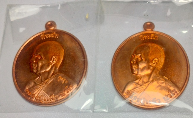 เหรียญหลวงปู่แผ้ว ปวโร วัดรางหมัน รุ่น ยกช่อฟ้า ปี 54 เนื้อทองแดง จำนวน 2 เหรียญ สร้าง 5,999 เหรียญ
