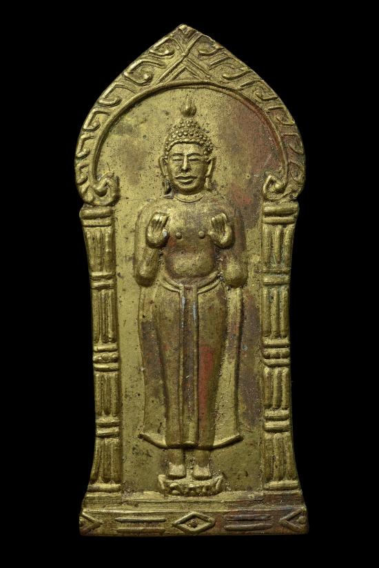 เหรียญ ปางห้ามสมุทร หลังยันต์ ((หลวงพ่อเงิน วัดดอนยายหอม ปลุกเสก)) เนื้อทองเหลืองฝาบาตร |