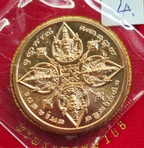 เหรียญพรพระพรหม 168 พิมพ์เหรียญกลม เนื้อทองแดง ตอกนำฤกษ์ หลังอุดมวลสาร จาพนม ยีรัมย์ สร้าง |