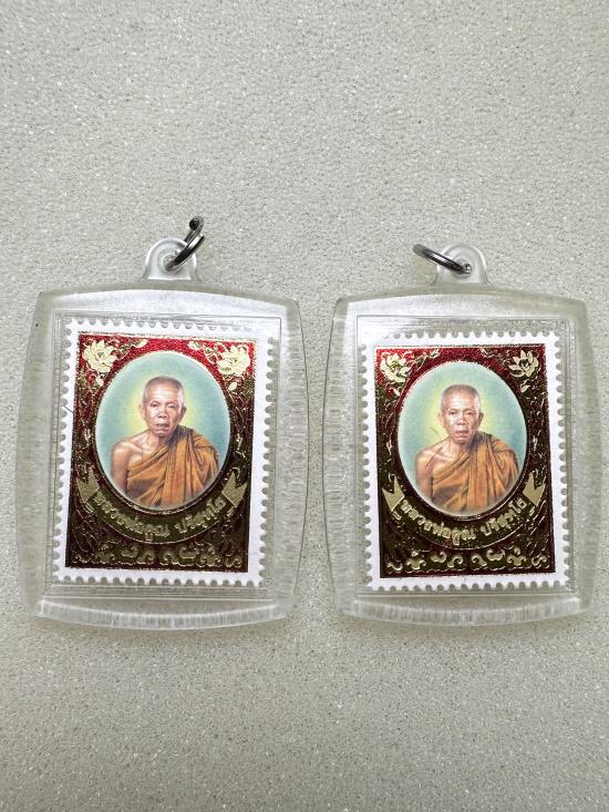 แสตมป์ทองรัตนรังสี_หลวงพ่อคูณ_วัดบ้านไร่ ปี2542 ขนาดบูชา 1x1.5นิ้ว_เลี่ยมพลาสติกมาเดิมๆ 2 รูป |
