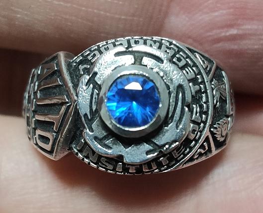 วัดใจ 100 แหวนรุ่นชั่งกล เนื้อเงิน ฝังพลอยสีน้ำเงิน น้ำหนัก 6.32 กรัม ไม่ทราบที่ เส้นผ่าศูนย์กลาง 1.7-1.8 ซม. เคาะเดียวแดง