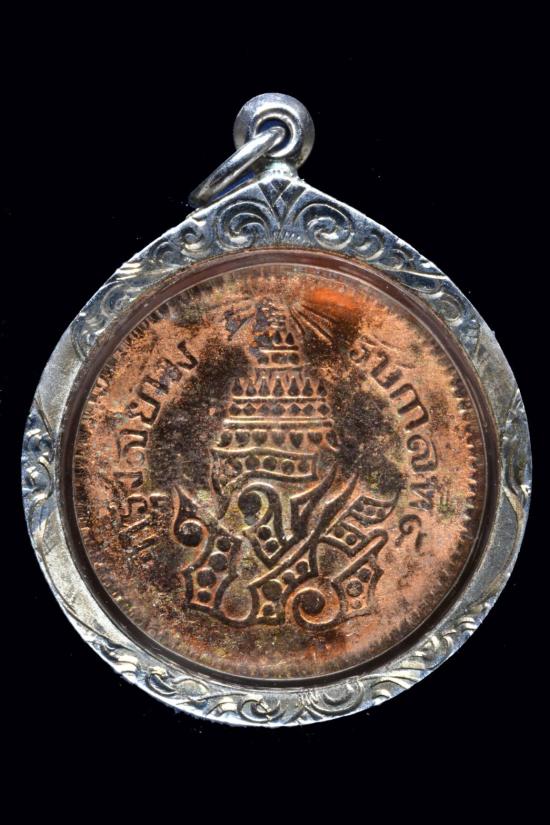 วัดใจ 490.เหรียญโสฬส ทองแดงตรา จ.ป.ร. - ช่อชัยพฤกษ์ จ.ศ.1236 เลี่ยมเงิน |
