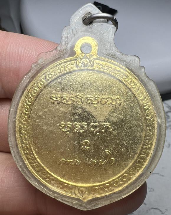 เหรียญ หลวงพ่อเกษม เขมโก วัดคลองน้ำไหล จ.กำแพงเพชร 2517 เนื้อกะไหล่ทอง เลี่ยมเก่าๆครับ |