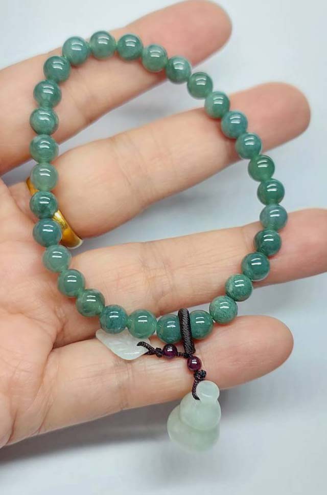 ***วัดใจ***สร้อยข้อมือ หยกพม่า พร้อมจี้ เม็ด 6 มิล สวยๆ |