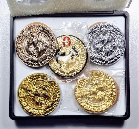 พุทธศิลป์สวยงาม พืธีดี ชุดกรรมการ5เหรียญ นวะ,ชุบทองลงยา,ชุบทอง,สัตตะ,ตะกั่ว