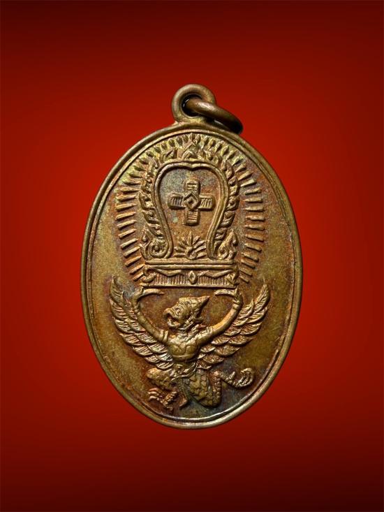 เหรียญพญาครุฑแบกเสมา หลวงพ่อโอภาสี อาศรมบางมด พิมพ์ย้อนยุค ปี 2514 (หลวงปููโต๊ะ ปลุกเสก) เนื้อทองแดงผิวไฟ |