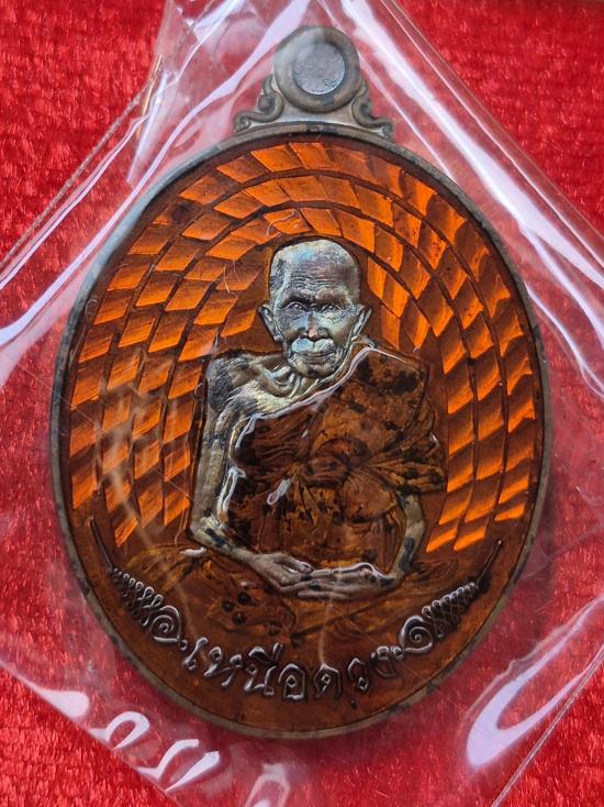 กำลังแรง เหรียญ เหนือดวง หลวงปู่พา จ.ร้อยเอ็ด เนื้อทองแดงโบราณลงยาสีส้ม เลข 527