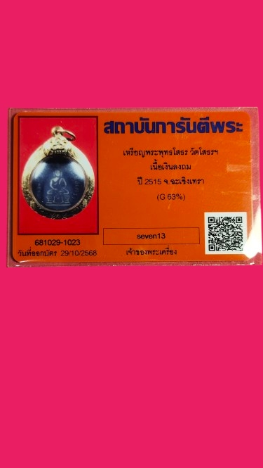 เหรียญกลมหลวงพ่อโสธร เนื้อเงินลงถม วัดโสธร ฯ ปี 2515 เลี่ยมกรอบทองคำแท้ พร้อมบัตรรับรอง