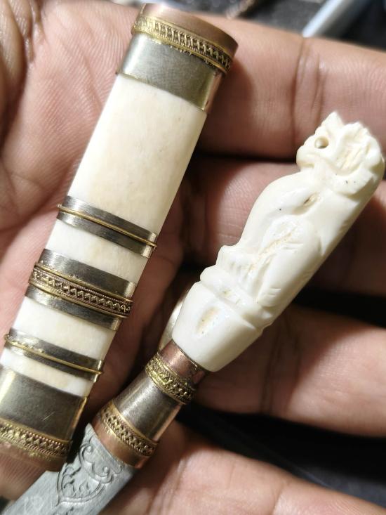 มีดหมอหัวเสือ ด้ามงา-ฝักงา หลวงพ่อเปิ่น วัดบางพระ ปี2536 พร้อมบัครรับรอง |