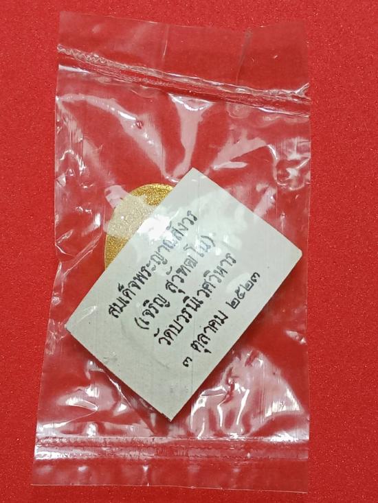 เคาะเดียว ซองพลาสติกซีลเดิมพร้อมใบฝอย พระปิดตายันต์ดวงเล็ก เนื้อผงธูปกัมมัฏฐานผสมผงพุทธคุณ ลงทองทั้งองค์ สมเด็จพระญาณสังวร(เจริญ สุวัฑฒโน ปธ.๙) วัดบวรนิเวศวิหาร ๒-๓ ตุลาคม ๒๕๒๓ |