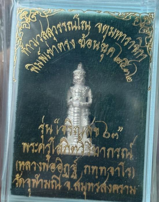 รูปหล่อท้าวเวสสุวรรณ หลวงพ่ออิฏฐ์ วัดจุฬามณี พิมพ์เข่าตรง รุ่นเจริญสุข 63 พ.ศ.2563 #เนื้อเงิน สภาพสวย ไม่แกะซีลลุ้นเลขสวย |