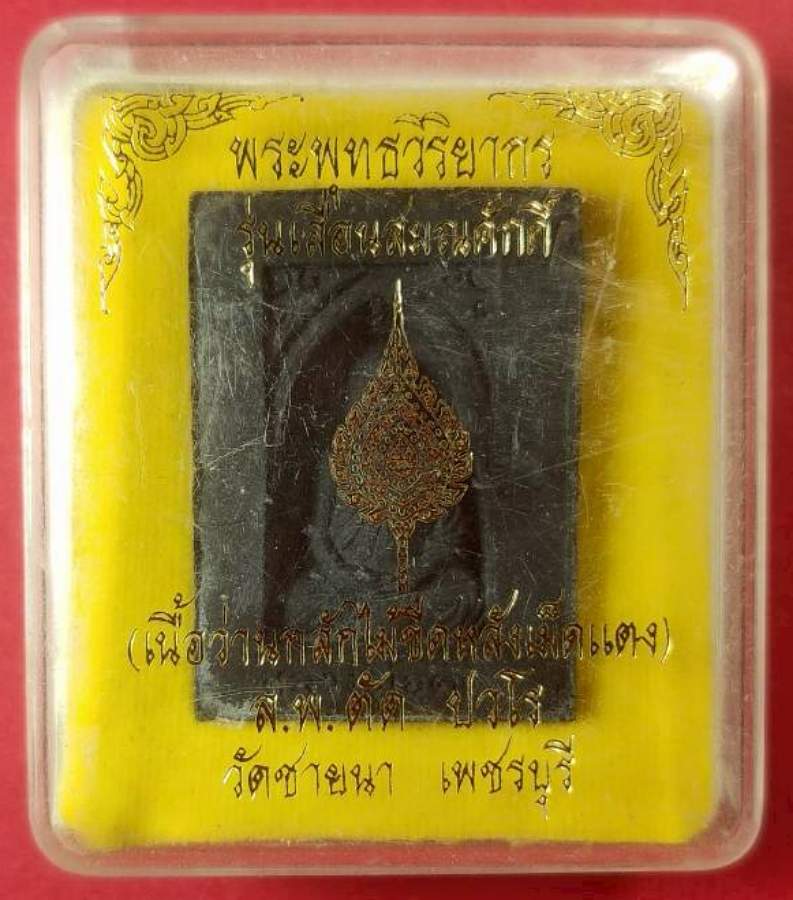 พระผงเลื่อนสมณศักดิ์ หลวงพ่อตัด (พิมพ์กลักไม้ขีดหลังเม็ดแตงเนื้อดีบุก) รุ่นเลื่อนสมณศักดิ์ ปี52 หลวงพ่อตัด วัดชายนา จ.เพชรบุรี (ตอกโค้ด หมายเลขกำกับ)