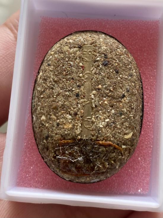 ล็อคเก็ต หลวงพ่อโอภาสี ไม่ทราบปีด้านหลังอุดมวลสารมีเกษาและตะกรุด 1 ดอก |