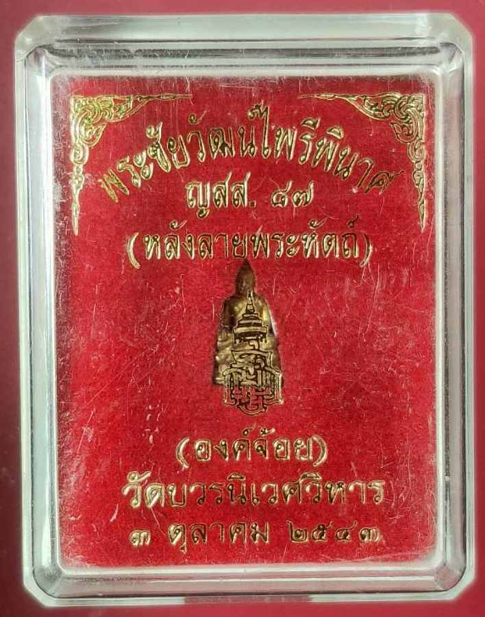 พระชัยวัฒน์ไพรีพินาศ ญสส.๘๗ (องค์จ้อย) หลังลายพระพัตถ์ วัดบวรนิเวศวิหาร พ.ศ.2543 พร้อมกล่องเดิม