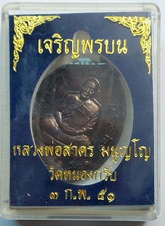 เหรียญเจริญพรบน เนื้อทองแดงรมดำ ปี 2551 หลวงพ่อสาคร วัดหนองกรับ สวยเดิม จมูกโด่ง พร้อมกล่องเดิม หมายเลข 7986 เจ้าของซีลผิวรักษาไว้อย่างดี ถ่ายรูปผ่านซีลค่ะ สวยๆเบาๆค่ |