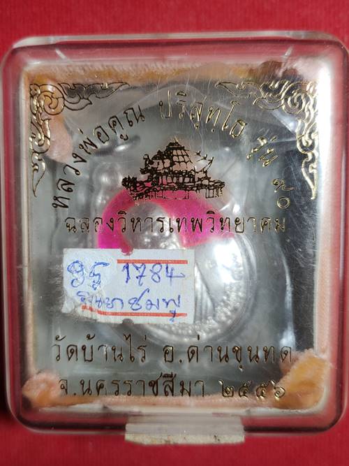 เหรียญหลวงพ่อคูณ ปริสุทโธ รุ่น ฉลองวิหารเทพ ออกวัดบ้านไร่ ปี 56 เนื้อ เงินลงยาสีชมพู หมายเลข 1784 เลี่ยมพร้อมใช้ เคาะเดียวแดง |