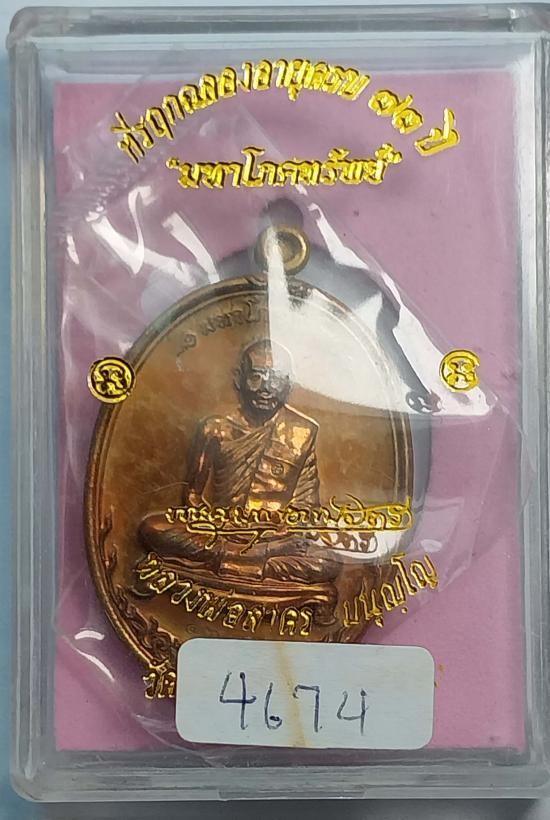 เหรียญ มหาโภคทรัพย์ หลวงพ่อสาคร วัดหนองกรับ เนื้อชวน หมายเลข 4674 พร้อมกล่องเดิม |