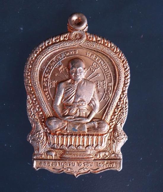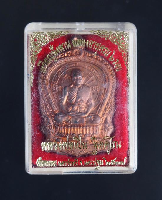 เหรียญนั่งพาน (พิมพ์ใหญ่) ฉลองอายุครบ 6 รอบ หลวงพ่อเปิ่น ฐิตคุโณ วัดบางพระ จ.นครปฐม ปี 2537 เนื้อทองแดง โค๊ด เลข สวยมากกล่องเดิม ขนาด 4.3 x 2.7 ซม. เคาะแรก |