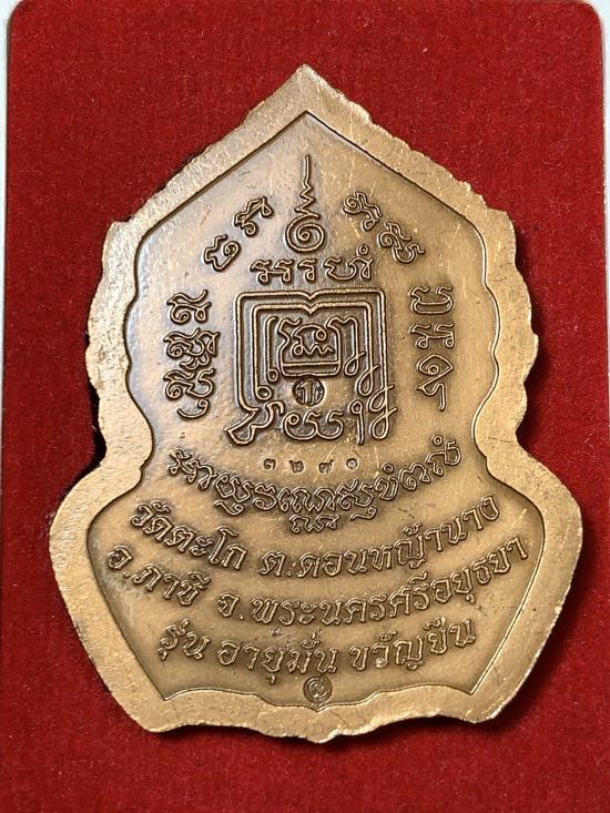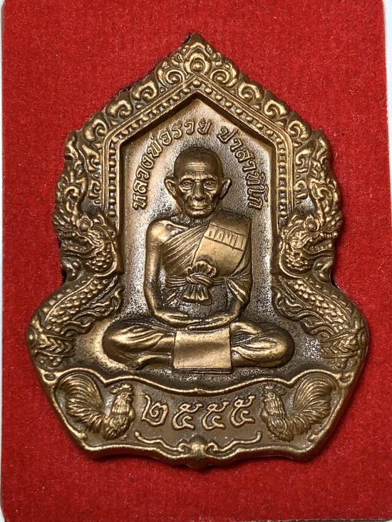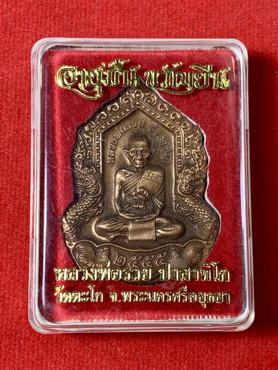 ชื่อพระเครื่อง ((แดงที่100))เหรียญหลวงพ่อรวย รุ่น "อายุมั่น ขวัญยืน" ปี 2555 เนื้อทองแดงซาติน