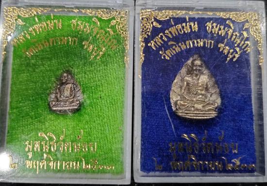 หลวงปู่ม่น วัดเนินตามาก เนื้อเงิน จังหวัดชลบุรี ปี 2533 รับพระ 2 องค์