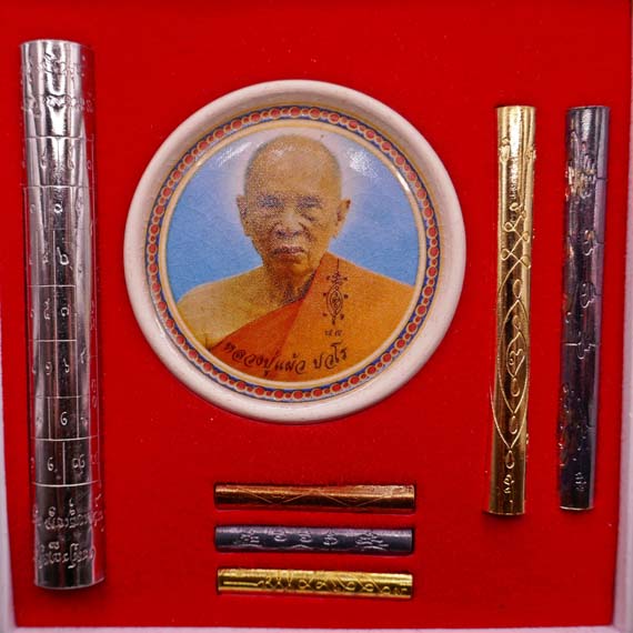 ชื่อพระเครื่อง !!!!วัดใจ 9 บาท!!!! ตะกรุดชุดชุดใหญ่กรรมการ หลวงปู่แผ้ว ปวโร รุ่นไตรมาส 50 ตะกรุด 6 ดอก พร้อมลูกเซรามิค หน้าหลวงปู่แผ้ว หลังสมด็จองค์ปฐม วัดเจริญราษฎร์บำรุง (วัดหนองพงนก)